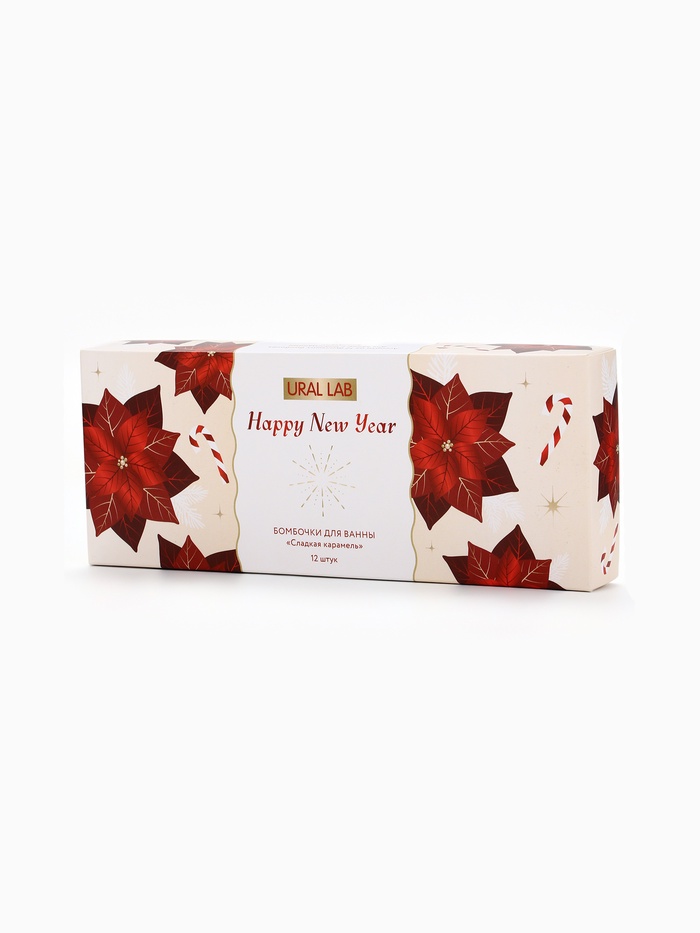 Бомбочки для ванны Happy New Year, аромат сладкая карамель, набор 12 шт. × 20 г, URAL LAB