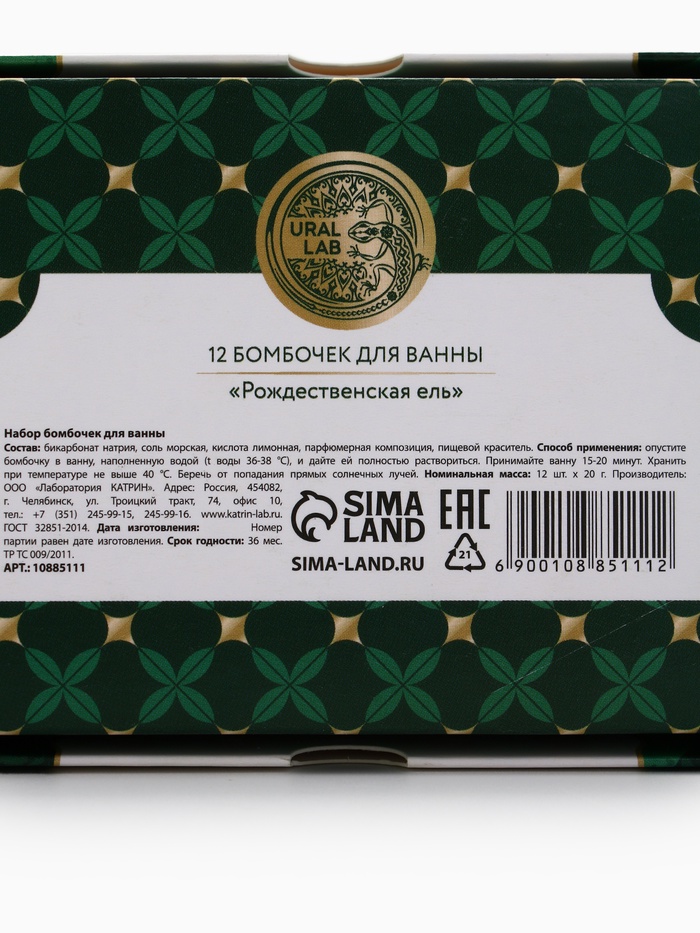 Технические характеристики Бомбочки для ванны Happy New Year, аромат рождественская ель, набор 12 шт. × 20 г, URAL LAB