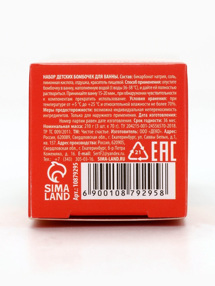 Технические характеристики Бомбочки для ванны «Кубики», набор 3 шт. × 70 г, аромат шипучий апельсин, URAL LAB