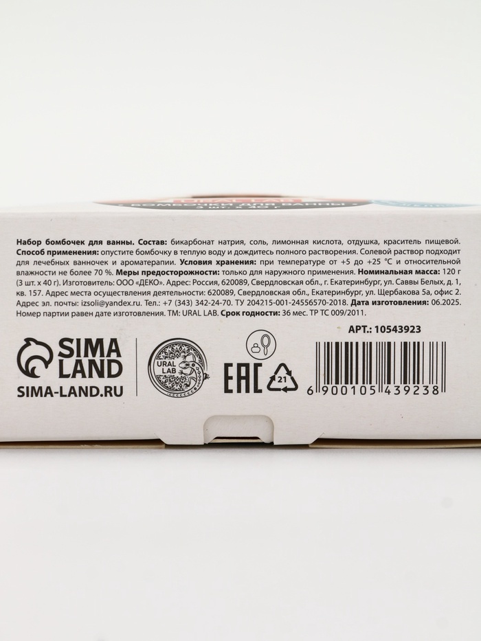Технические характеристики Бомбочки для ванны «Пингвин», 3 шт х 40 г, снежный маршмеллоу, URAL LAB