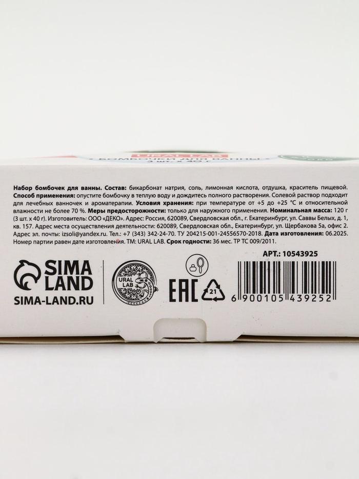 Технические характеристики Бомбочки для ванны «Снеговик», 3 шт х 40 г, сахарное яблоко, URAL LAB