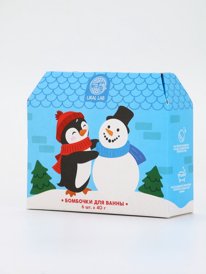 Бомбочки для ванны в домике «Пингвин», набор 6 шт х 40 г, URAL LAB