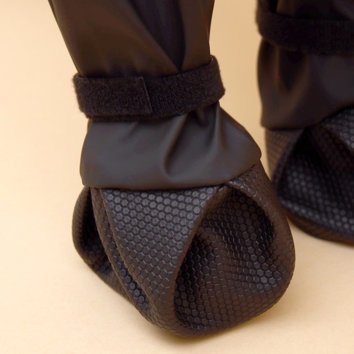 Ботинки-чулки для собак размера M (Длина лап 35-42, ДС 18-26, ОШ 16-50 см) — это удобная и практичная обувь для вашего питомца. Они выполнены из прочного материала чёрного цвета, который обеспечивает надёжную защиту от влаги и грязи. Ботинки легко надеваются и снимаются, а также плотно прилегают к лапам собаки, не сковывая её движений. Застёжка фастекс обеспечивает дополнительную фиксацию и комфорт при носке.