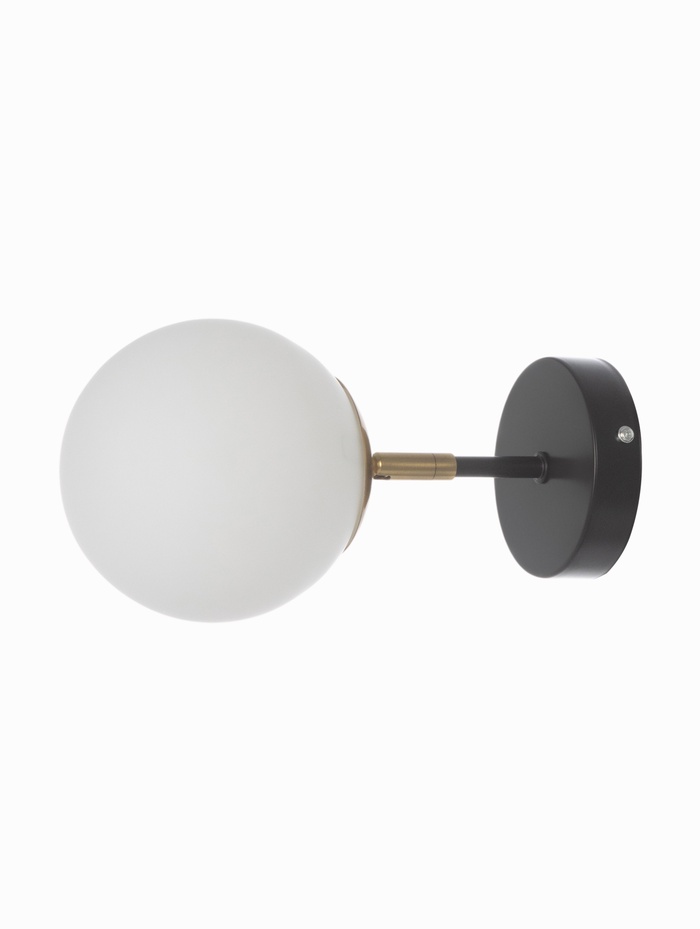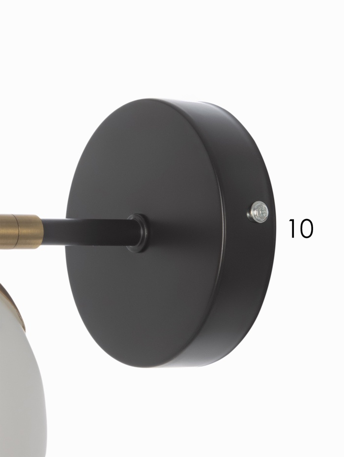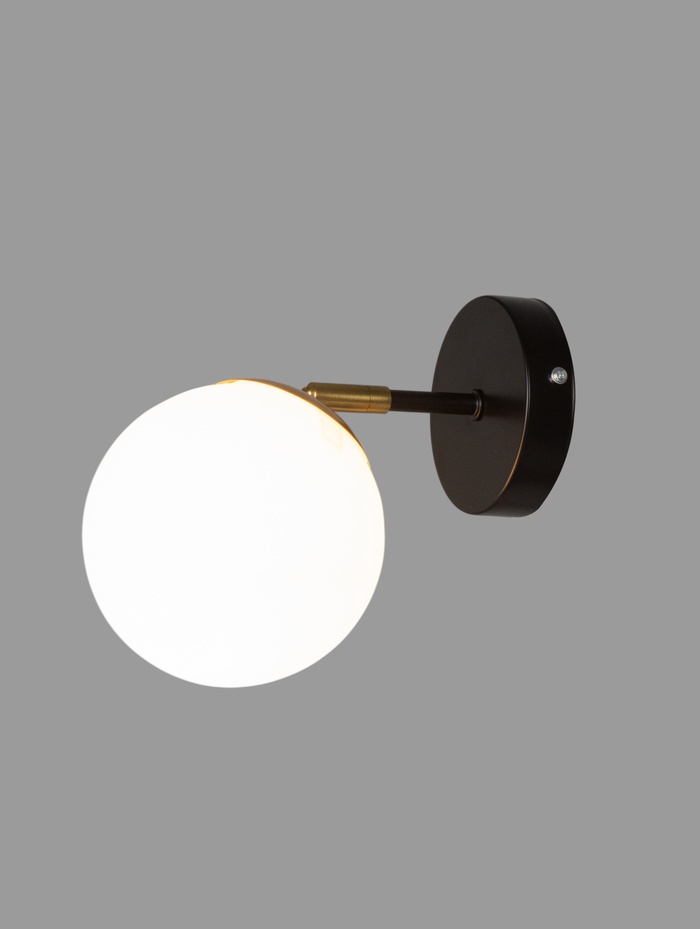 Настенный светильник с чёрным металлическим основанием и белым плафоном сочетает лаконичность современного дизайна с практичностью повседневной эксплуатации. Его стильная форма и глубокий чёрный цвет создают выразительный контраст в интерьере, добавляя структуру и эстетическую завершённость любой стене.