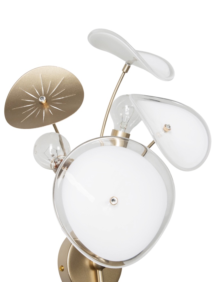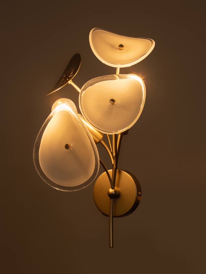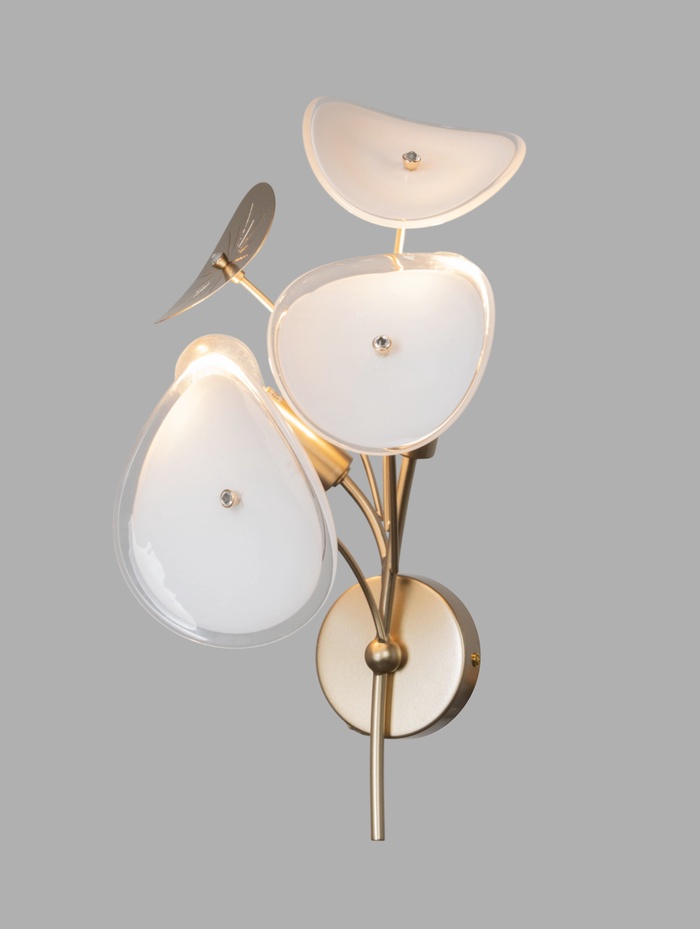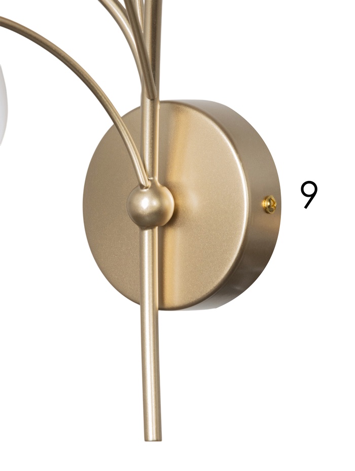 Изящная настенная модель с открытыми источниками света создаёт выразительный акцент и подчёркивает характер интерьера. Золотое металлическое основание добавляет теплоту и декоративность, а лаконичная форма делает светильник уместным в современных пространствах в стиле модерн.