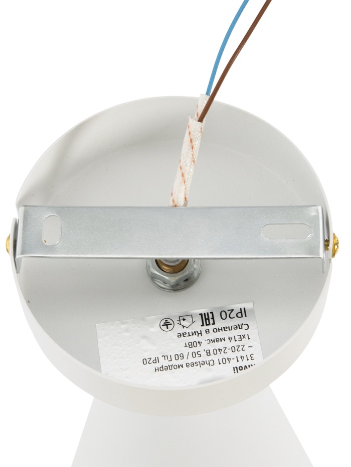Белое металлическое основание и плафон формируют цельный визуальный образ, который легко вписывается в современные интерьеры. Минималистичная форма делает светильник универсальным — он гармонично смотрится как в жилых, так и в функциональных зонах.