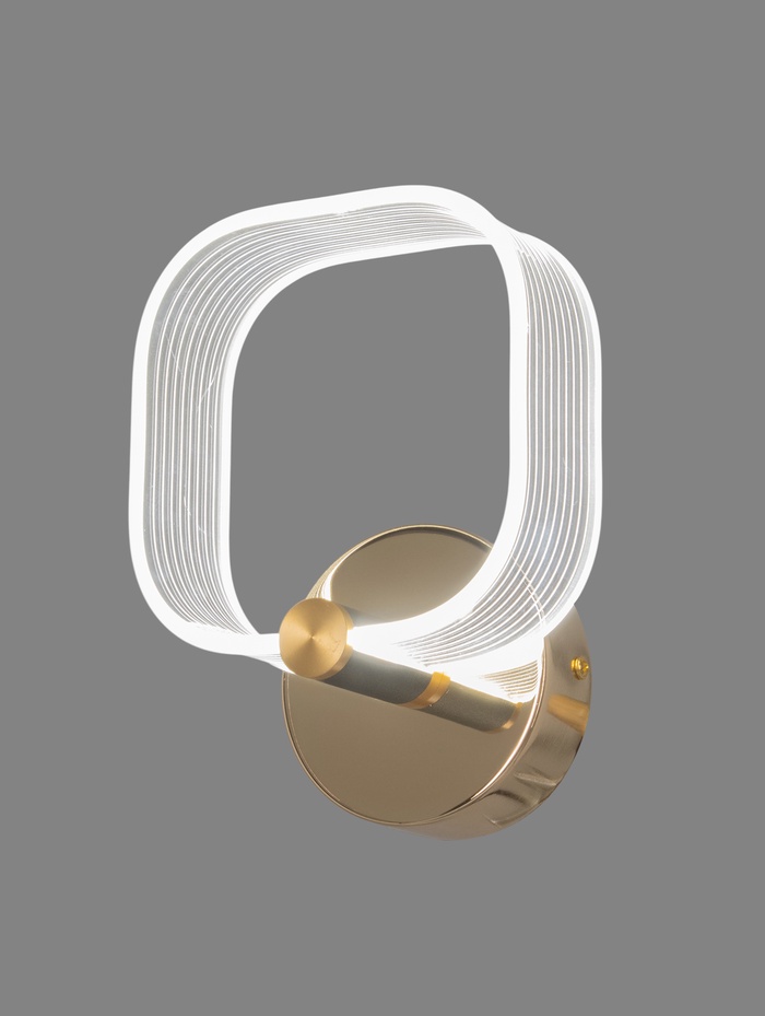 Настенное бра в золотистом исполнении создаёт выразительный световой акцент и подчёркивает современный характер интерьера. Металлическое основание придаёт конструкции прочность и визуальную глубину, а два источника света формируют эффектную и одновременно функциональную подсветку стены. Модель гармонично смотрится в жилых пространствах, добавляя им тепла и стиля.