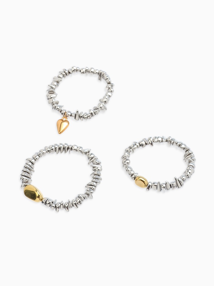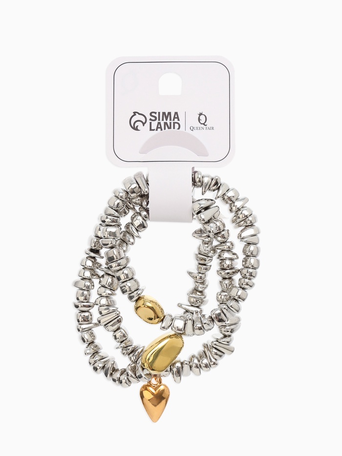 Браслет «Каменнное сердце», 3 шт. цвет золото, серебро