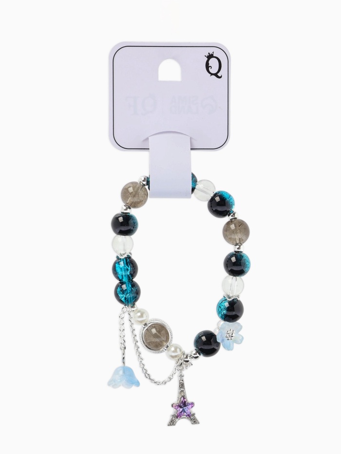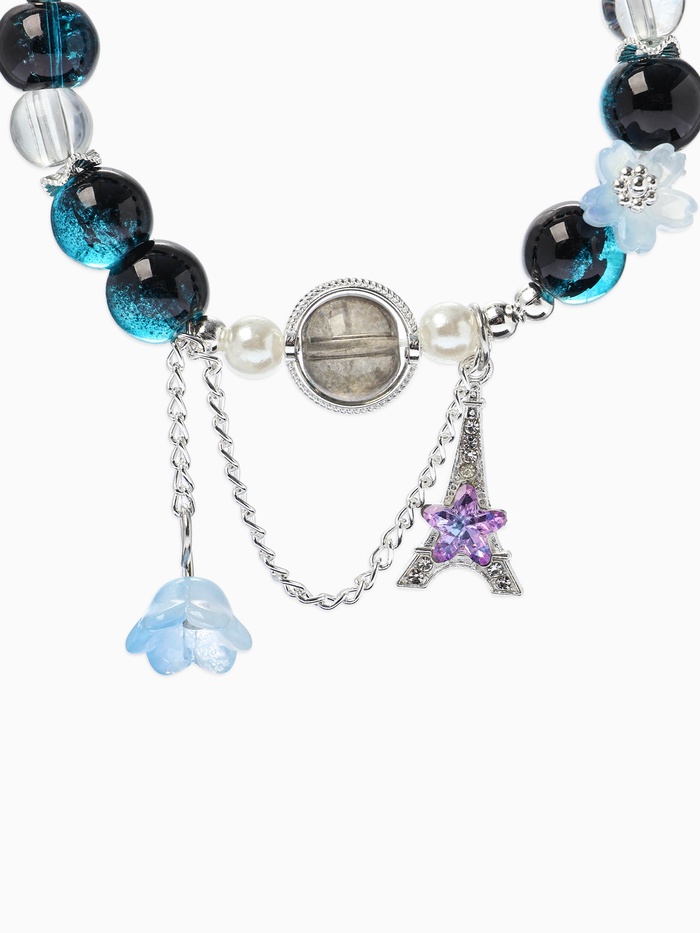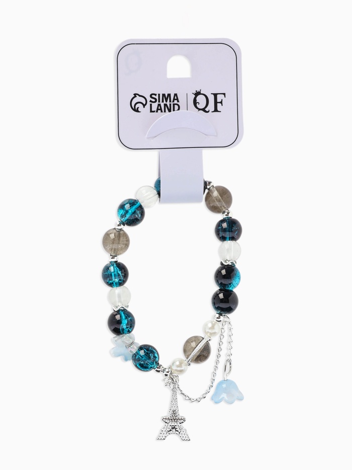 Технические характеристики Браслет с подвесками «Сахарный. Башня с цветами», d=6 см, шар №10/8, чёрный, синий в серебре