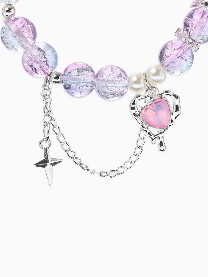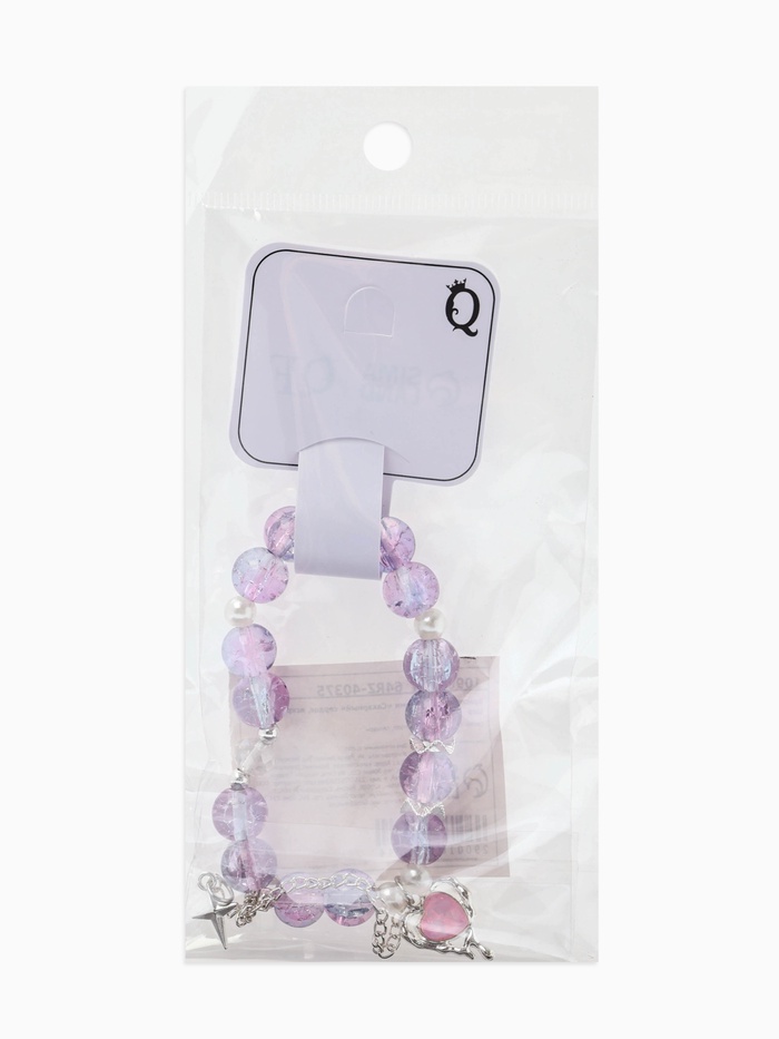 Технические характеристики Браслет с подвесками «Сахарный. Сердце, искра», d=6 см, шар № 10/8, розовый, фиолетовый в серебре