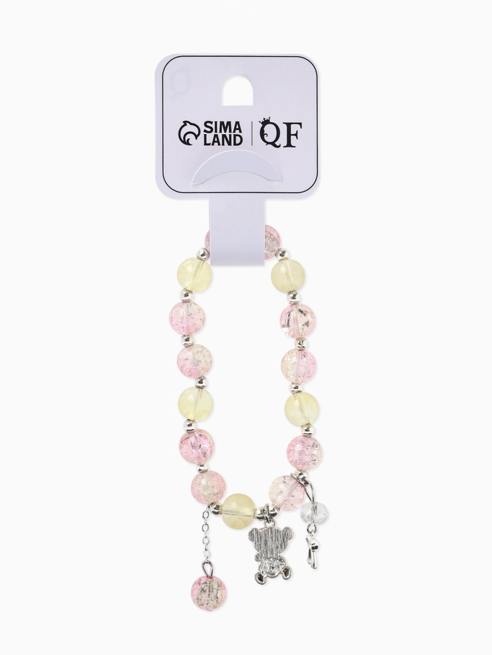 Браслет с подвесками «Сахарный. Мишка», шар №10/8, d=6 см, розовый, жёлтый в серебре