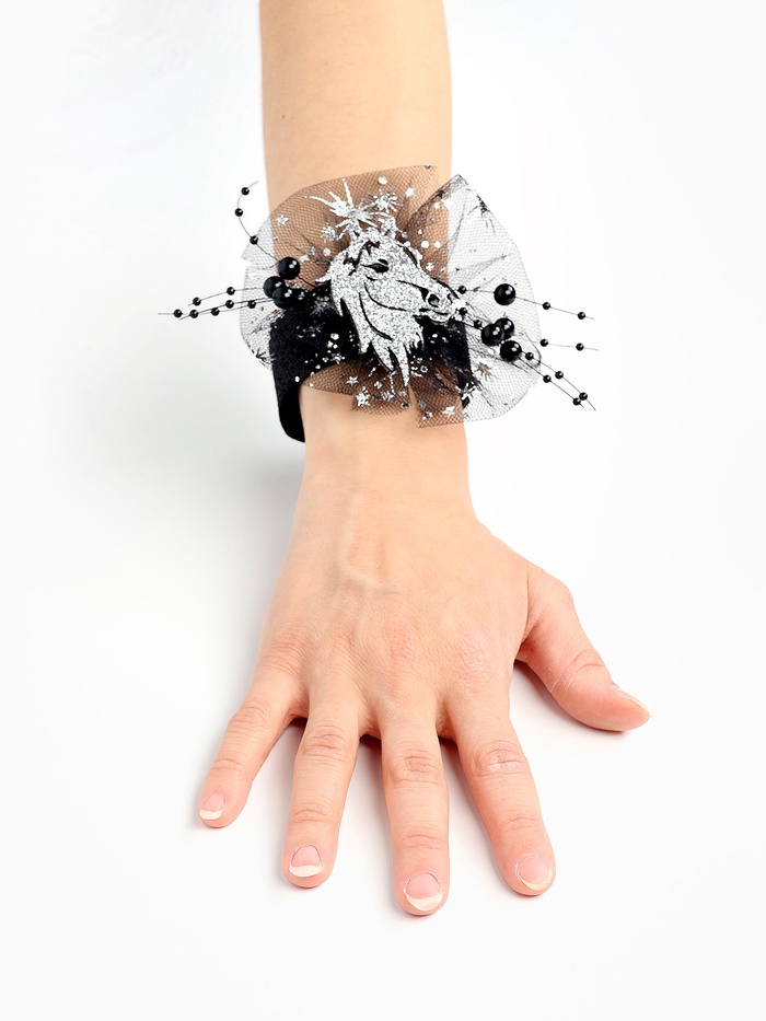 Браслет черная лошадка бант