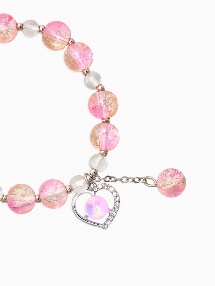 Браслет детский "Выбражулька" сердце с подвеской бусина, цвет розовый в серебре