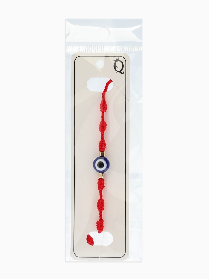 Браслет-оберег «Красная нить. Узлы с бусиной Око Фатимы», красный, синий