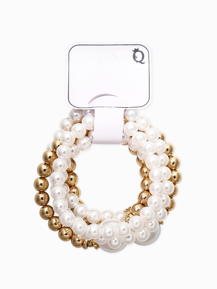 Набор из пяти изящных жемчужных браслетов украсит любую женскую руку. Мягко переливаясь белым оттенком с золотистым блеском, эта коллекция становится прекрасным решением для любительниц натуральных оттенков и классики.