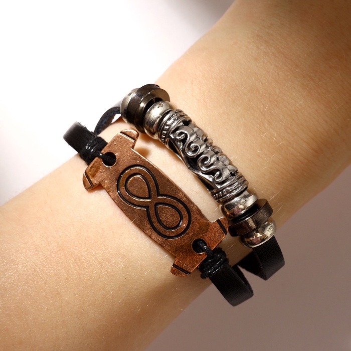Браслет унисекс «Гранд» бесконечность, цвет чёрный с серебряно-медным, d=7 см