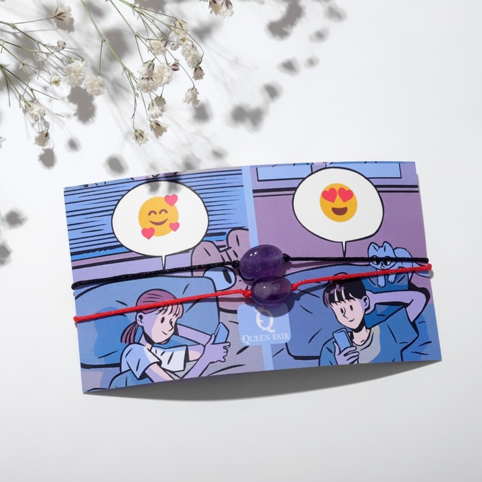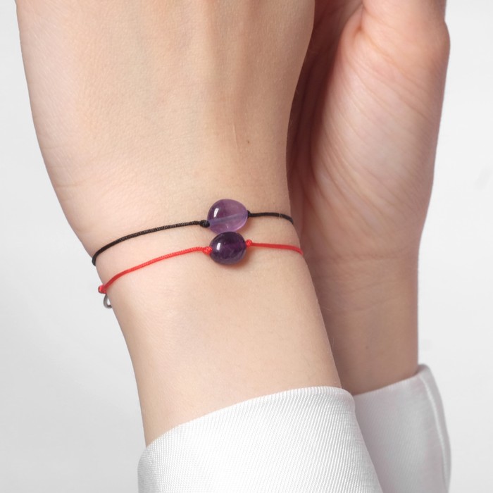 Браслеты «Неразлучники» «Аметист» на красной и чёрной нитях