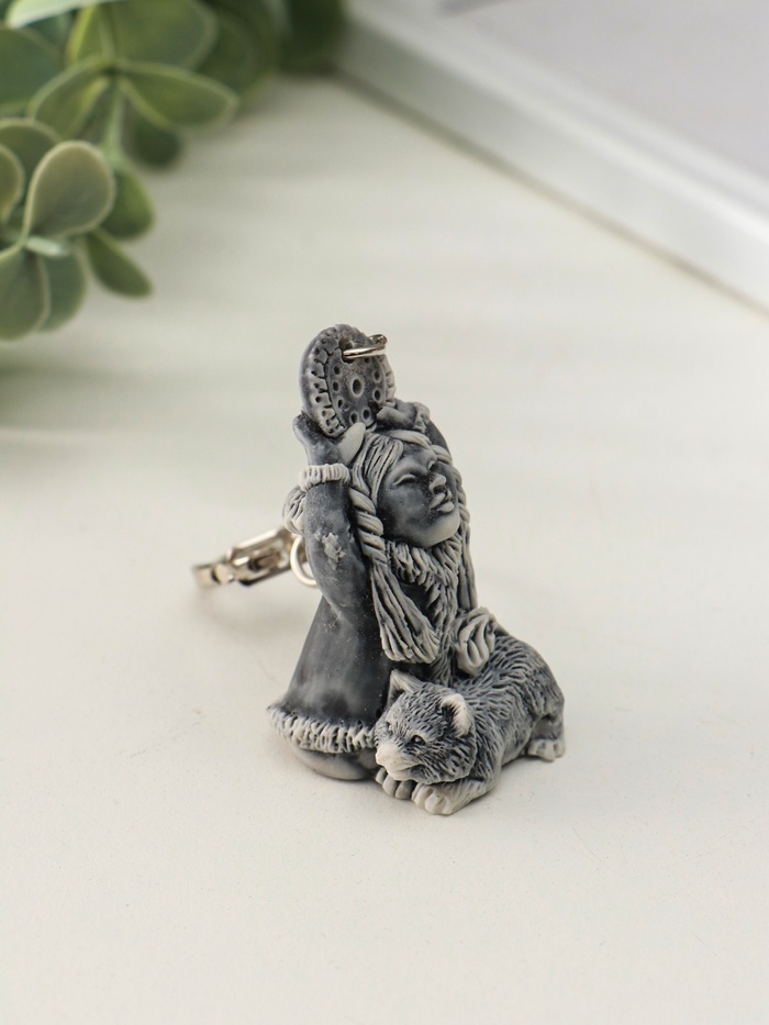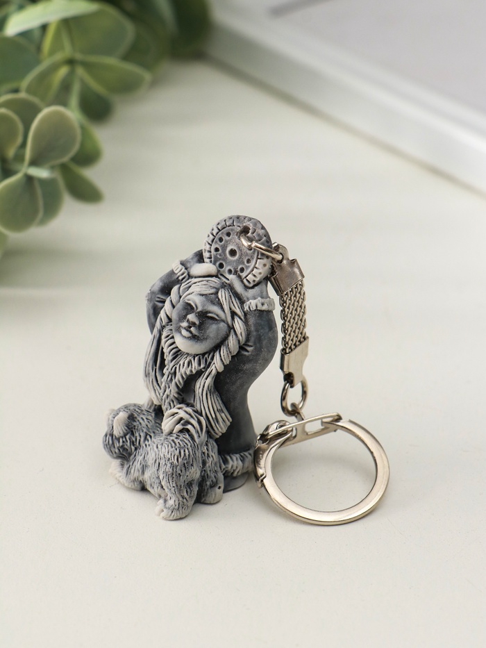 Брелок для ключей на кольце «Девочка со щенком и бубном маленькая», 4.8 см