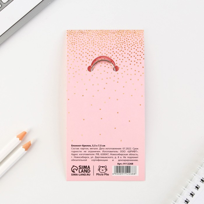 Технические характеристики Брелок для ключей блокнот «Мечтай», 5,5 х 7,5 см