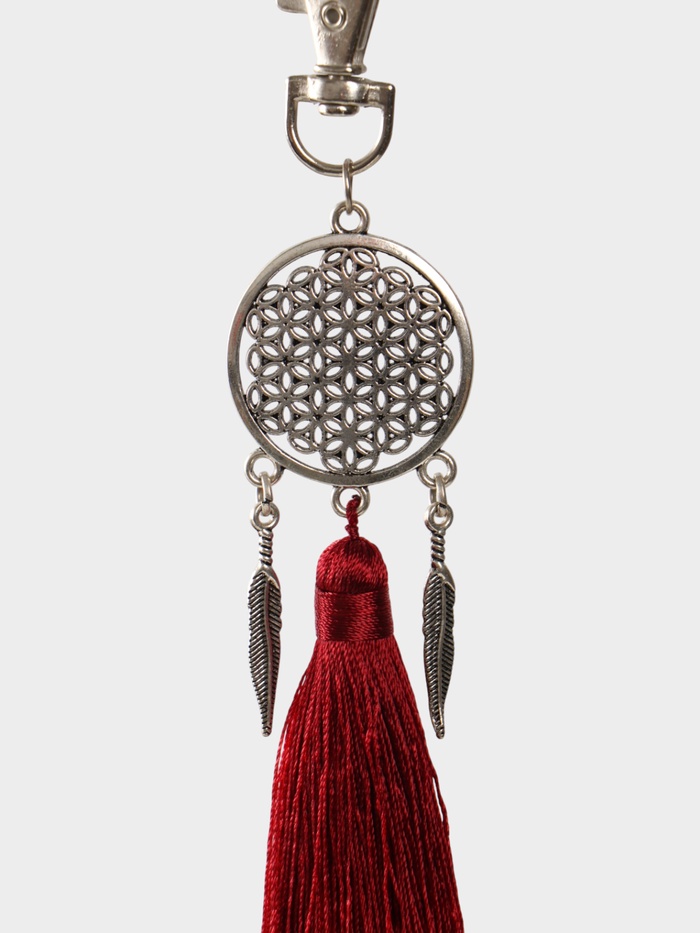 Брелок-кисточка "Ловец снов" 17 см, цв. бордовый, серебристый