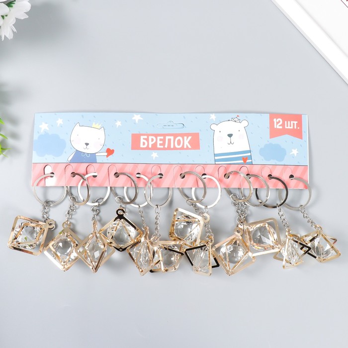 Брелок для ключей на кольце «Куб», кристалл, золотистый, 3×4×4 см