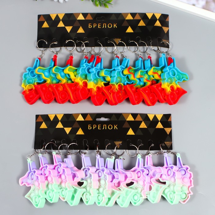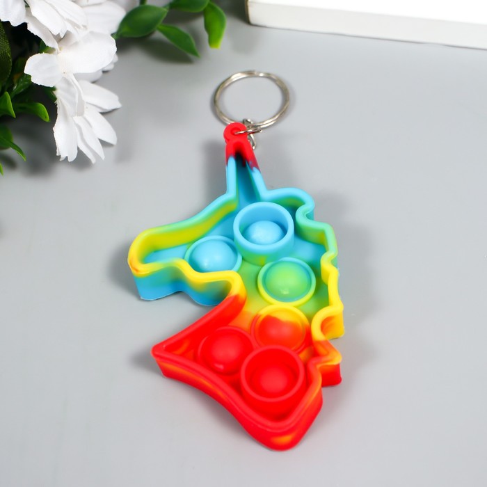 Брелок резина антистресс (бесконечная пупырка) "Единорог разноцветный" МИКС 9х5,5х1,3 см