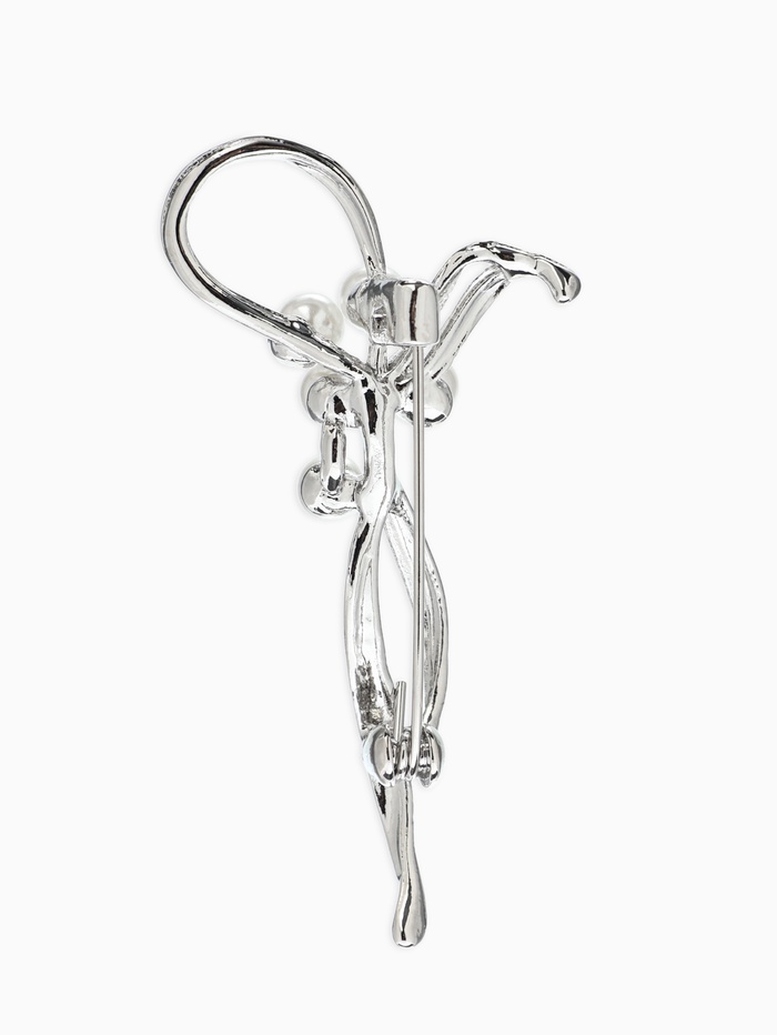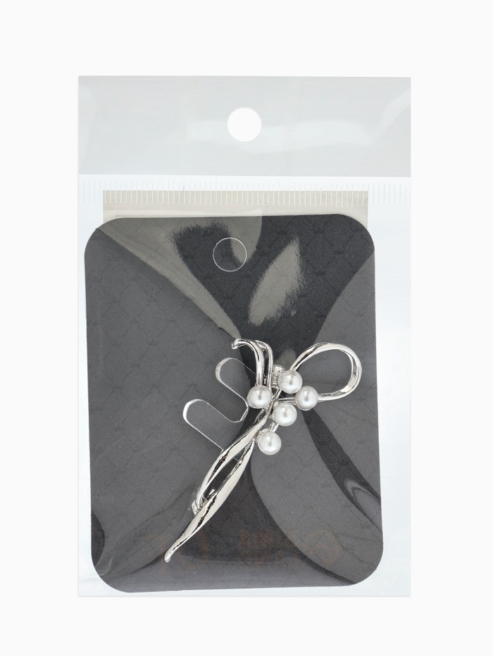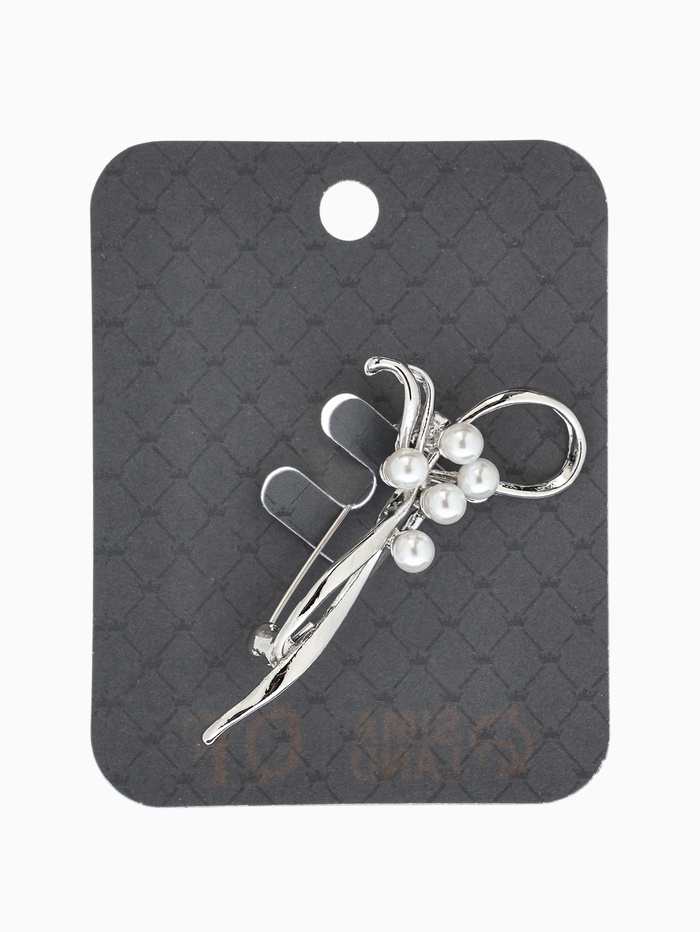 Технические характеристики Брошь «Бантик с жемчугом», белая в серебре