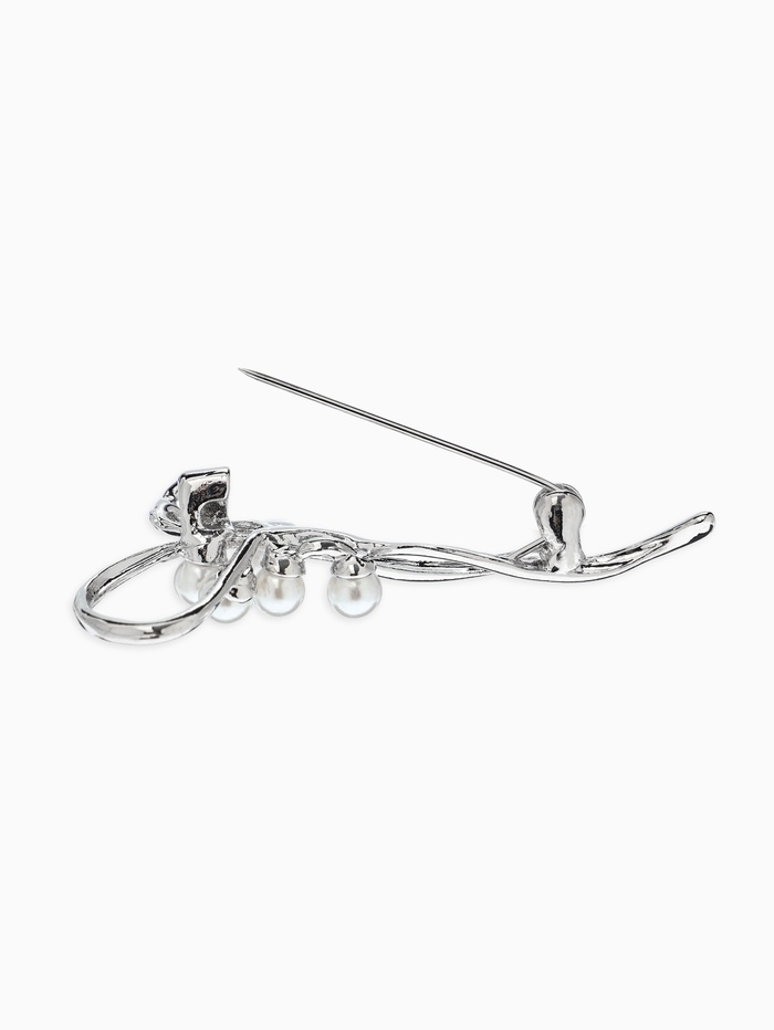 Брошь «Бантик с жемчугом», белая в серебре