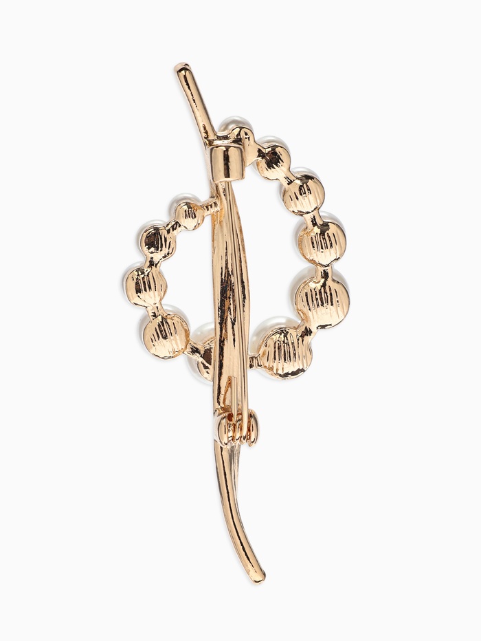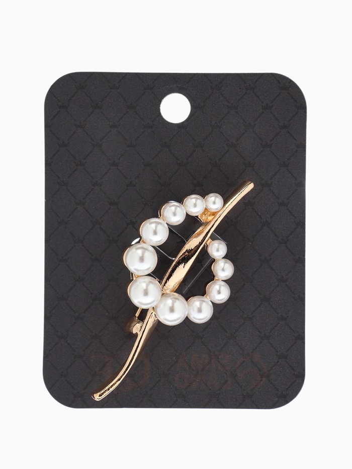 Брошь «Дуга с жемчугом», белая в золоте