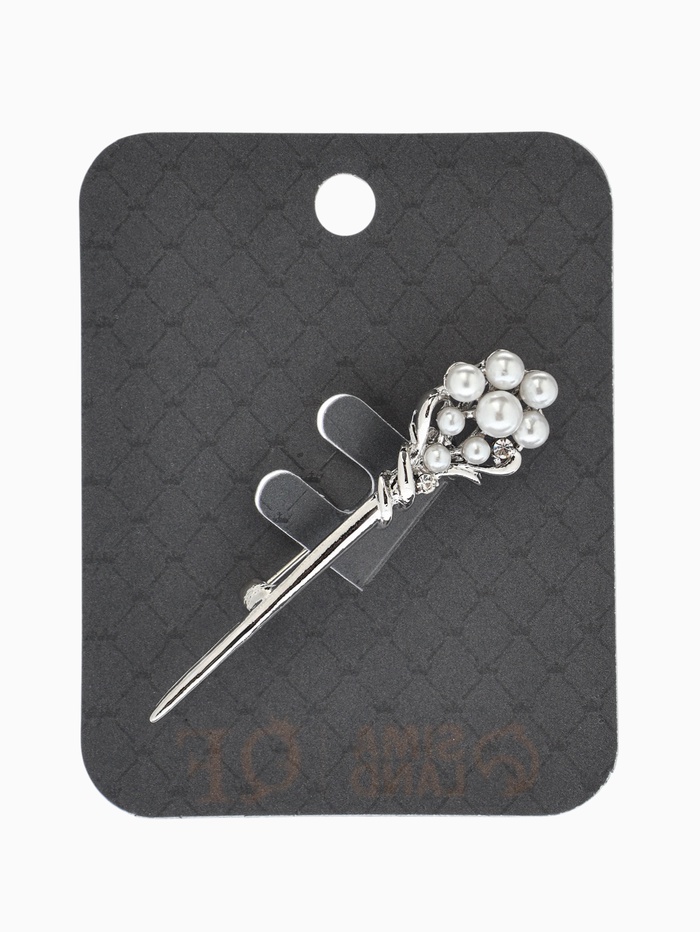 Брошь «Факел с жемчугом», белая в серебре