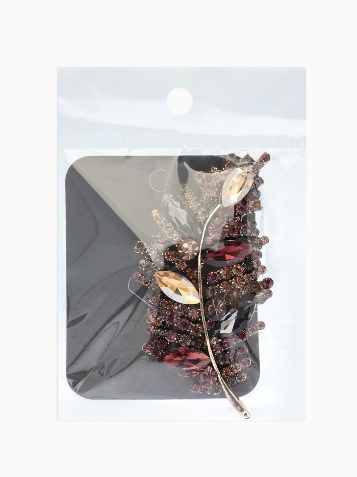 Технические характеристики Брошь "Императрица" лист, цвет бордово-коричневый в чернёном золоте