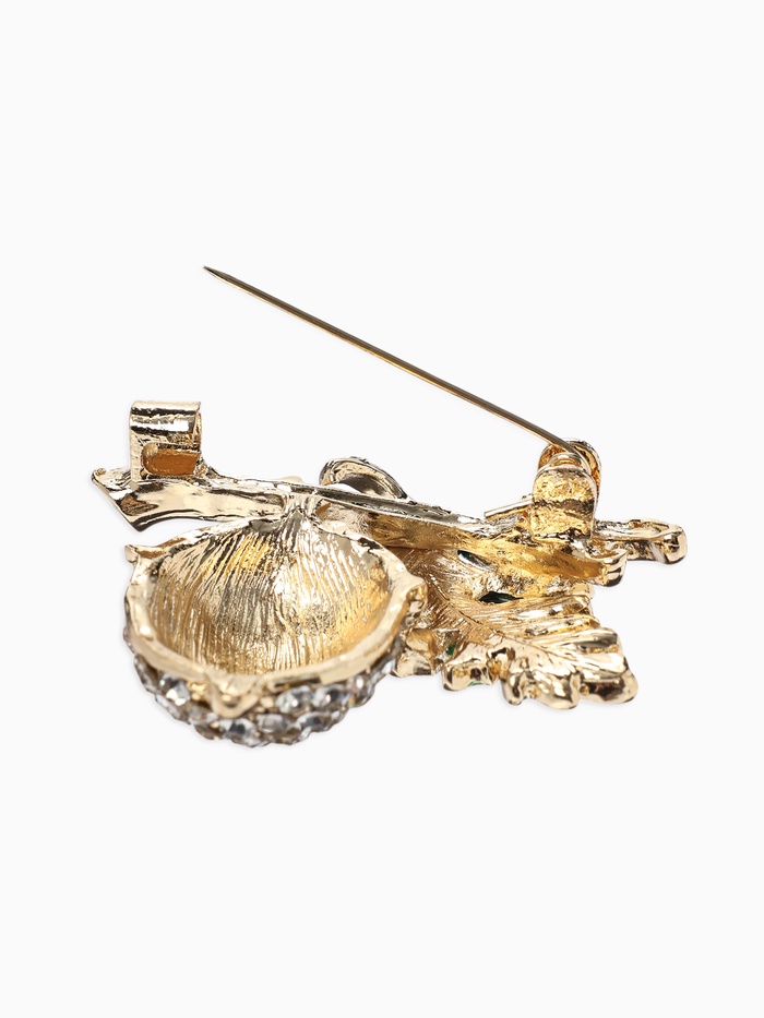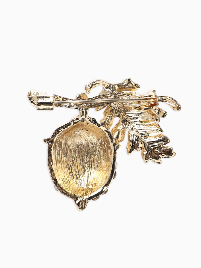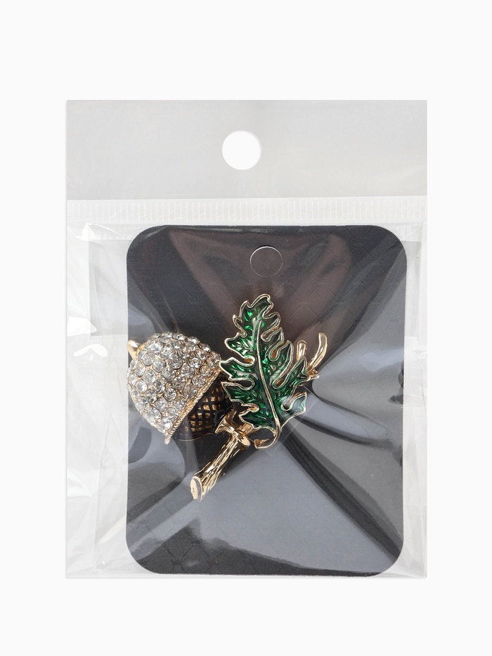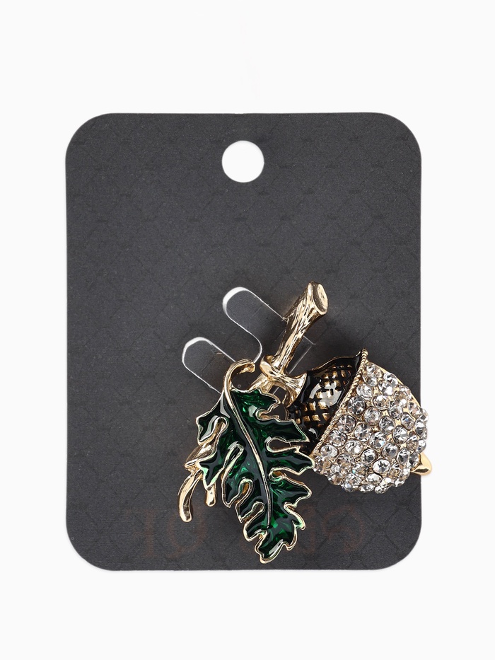 Технические характеристики Брошь «Жёлудь осенний с листом», стразы, коричневая, белая, зелёная в золоте