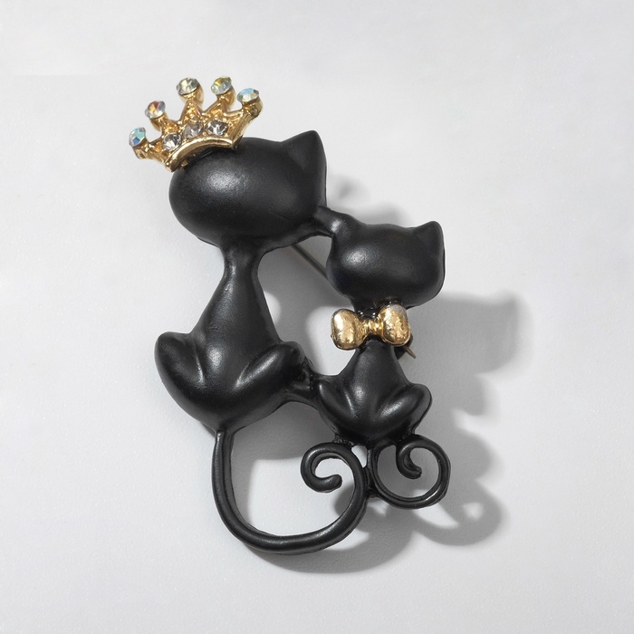 Брошь «Кошечки» принц и принцесса, цвет чёрный в золоте