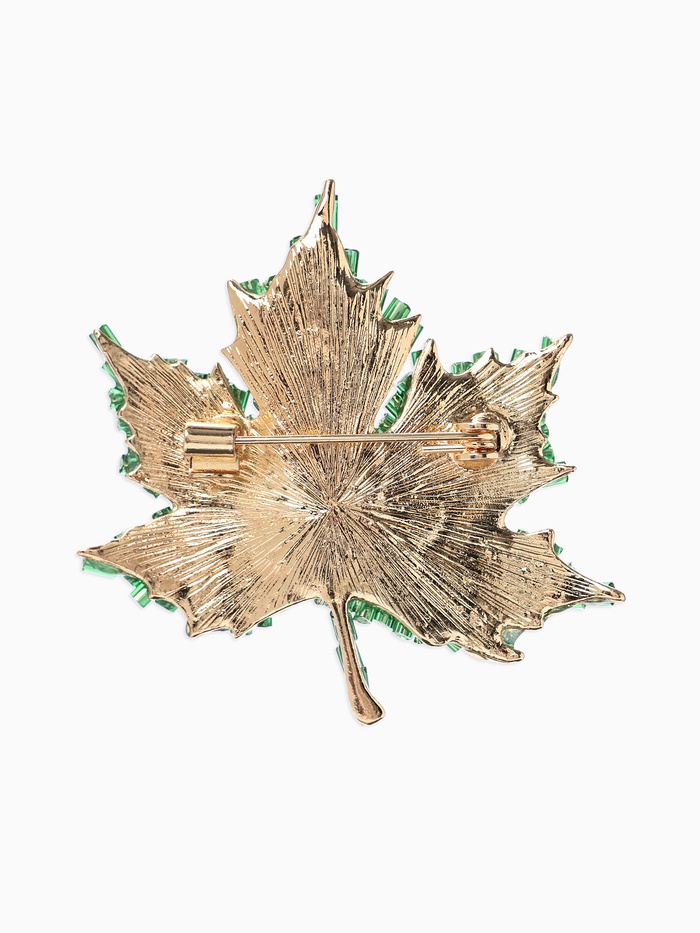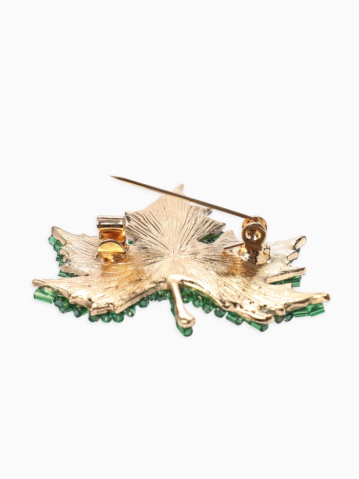 Брошь «Лист кленовый», стеклярус, зелёная в золоте