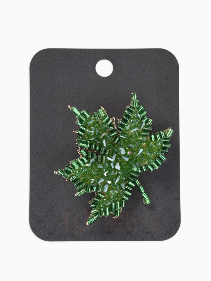 Технические характеристики Брошь «Лист кленовый», стеклярус, зелёная в золоте