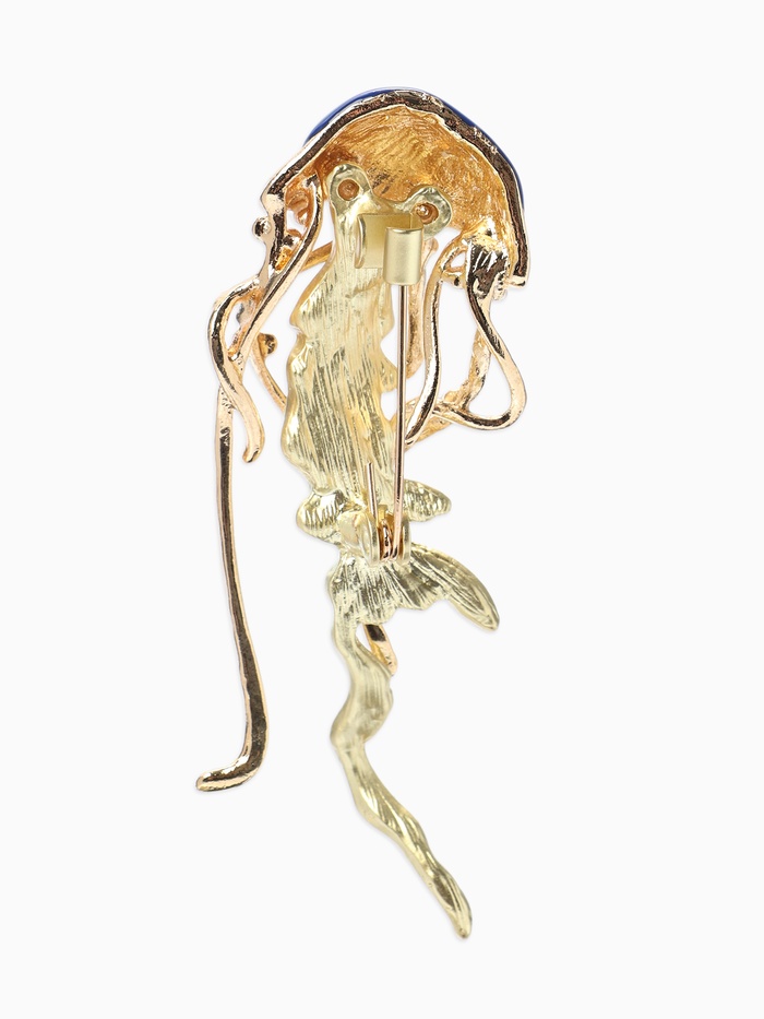Брошь «Медуза морская», синяя в золоте