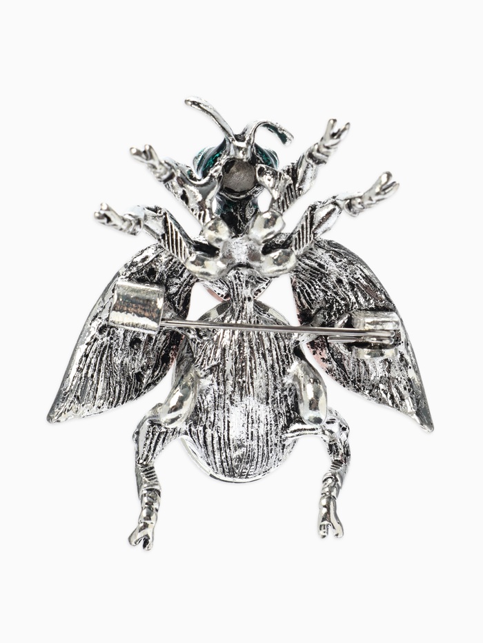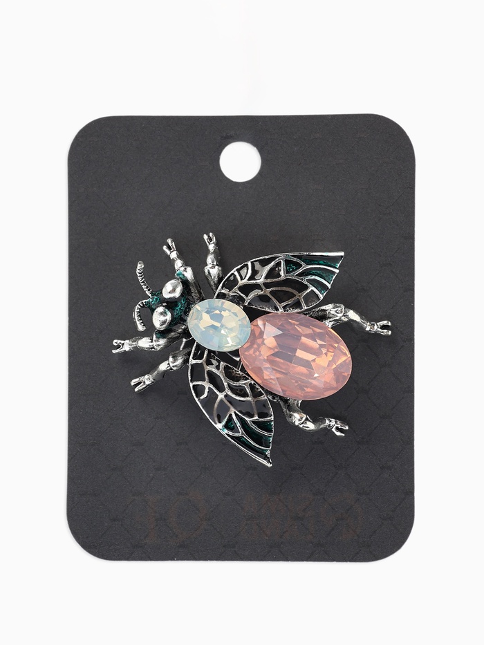Технические характеристики Брошь «Муха", резные крылья, цвет зелёно-розовый в черёном серебре