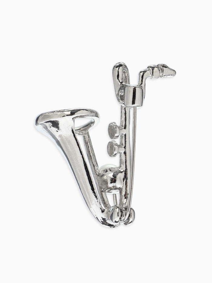 Брошь «Музыка. Саксофон с жемчужиной», белая в серебре
