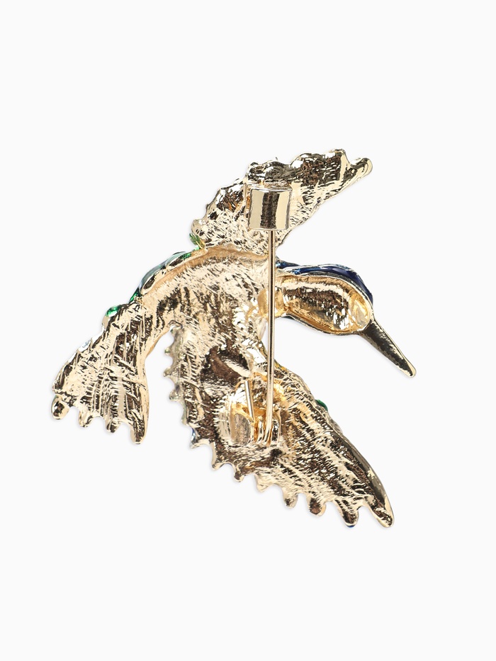 Брошь «Птица» колибри яркая, цветная в золоте