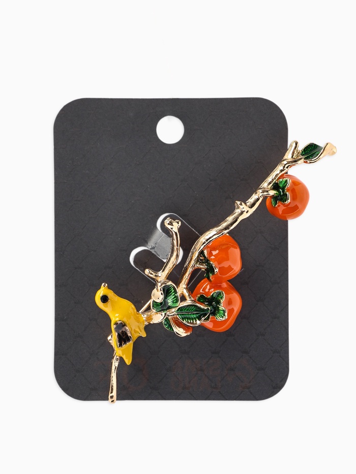 Технические характеристики Брошь «Птица на ветке с хурмой», оранжевая в золоте