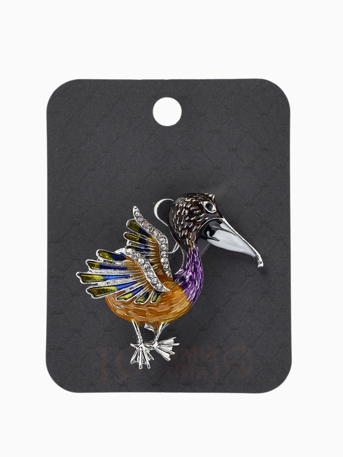 Брошь «Птица Пеликан», разноцветная в серебре