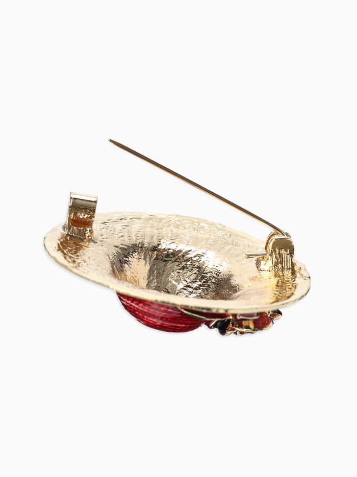 Брошь «Шляпа с цветком», разноцветная в черненом золоте