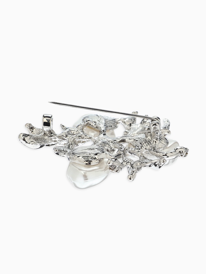 Брошь «Цветочек роскошный жемчуг», белая в серебре