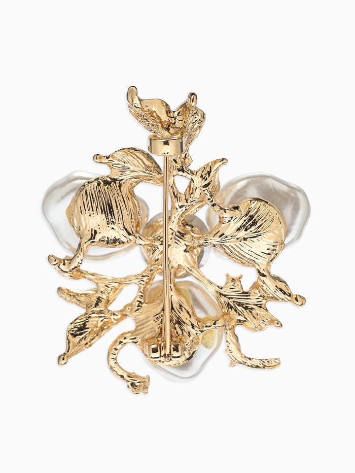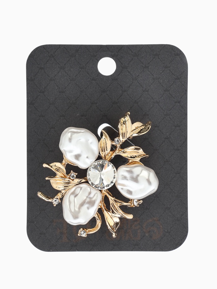Технические характеристики Брошь «Цветочек роскошный жемчуг», белая в золоте