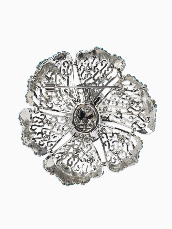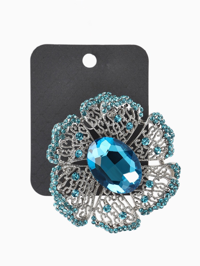 Технические характеристики Брошь «Цветок сапфировый», стразы, синий в серебре