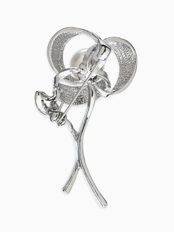 Технические характеристики Брошь «Цветок Тринити с жемчугом», белая в серебре