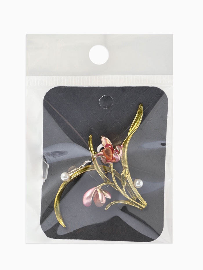 Технические характеристики Брошь «Цветы Ирисы с жемчугом», красная, розовая