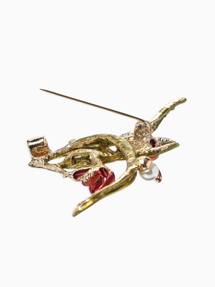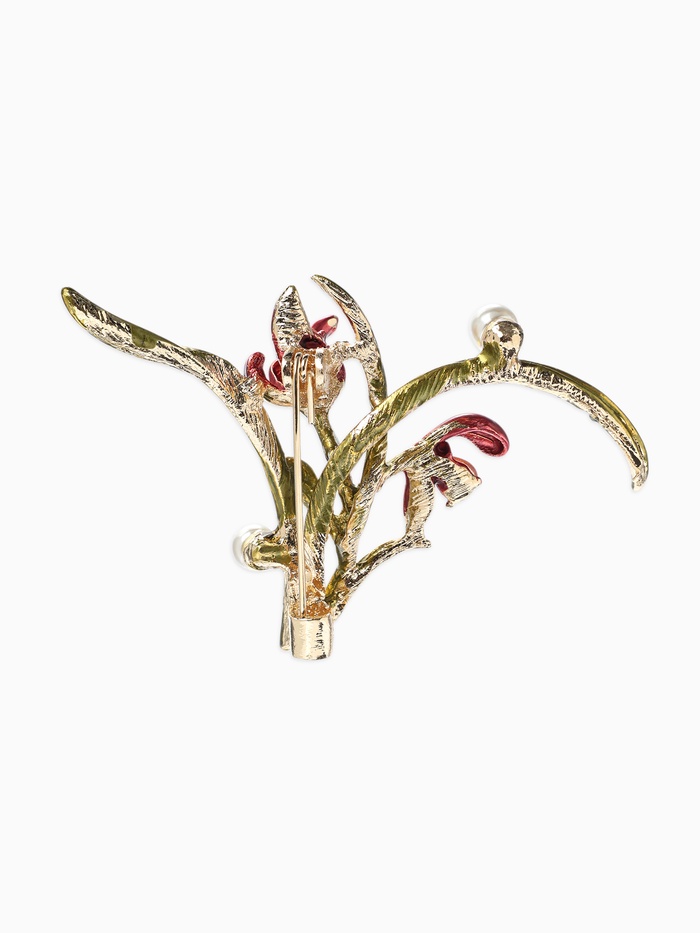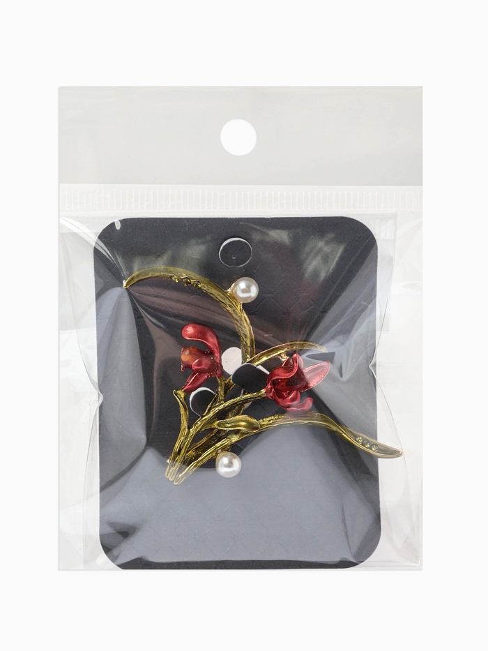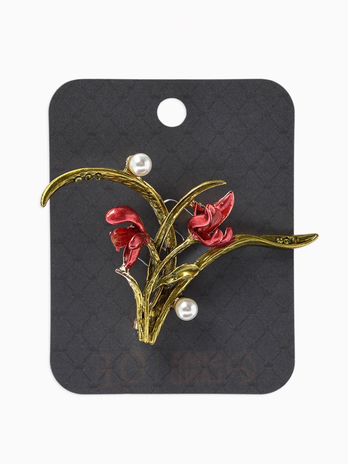 Технические характеристики Брошь «Цветы Ирисы с жемчугом», красная, зелёная