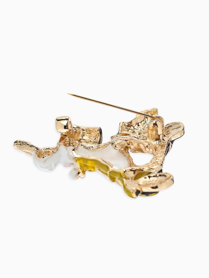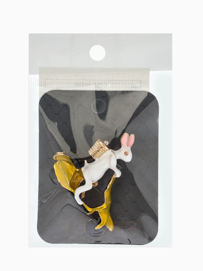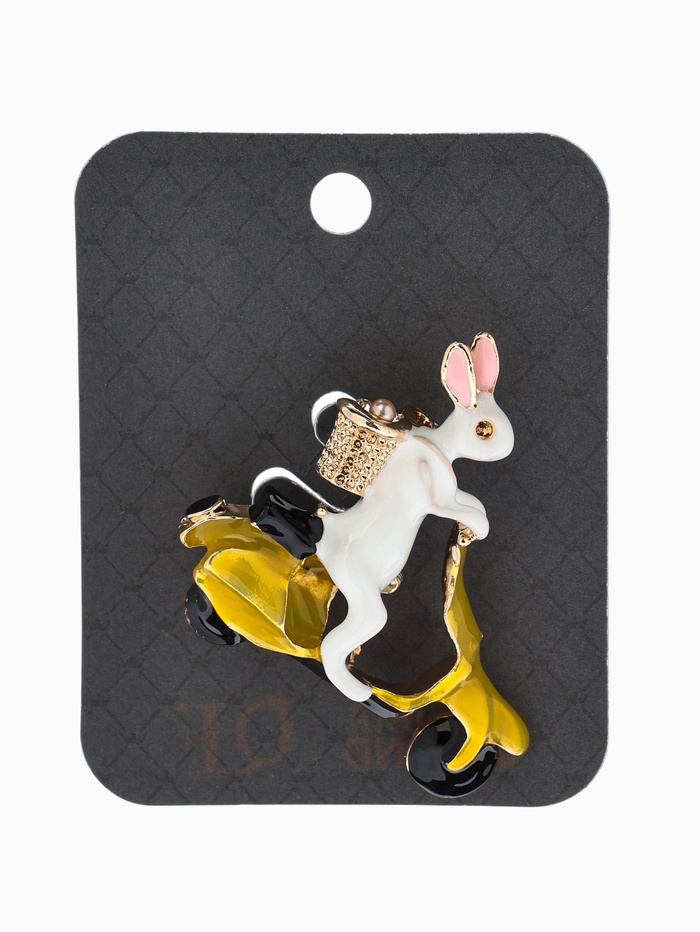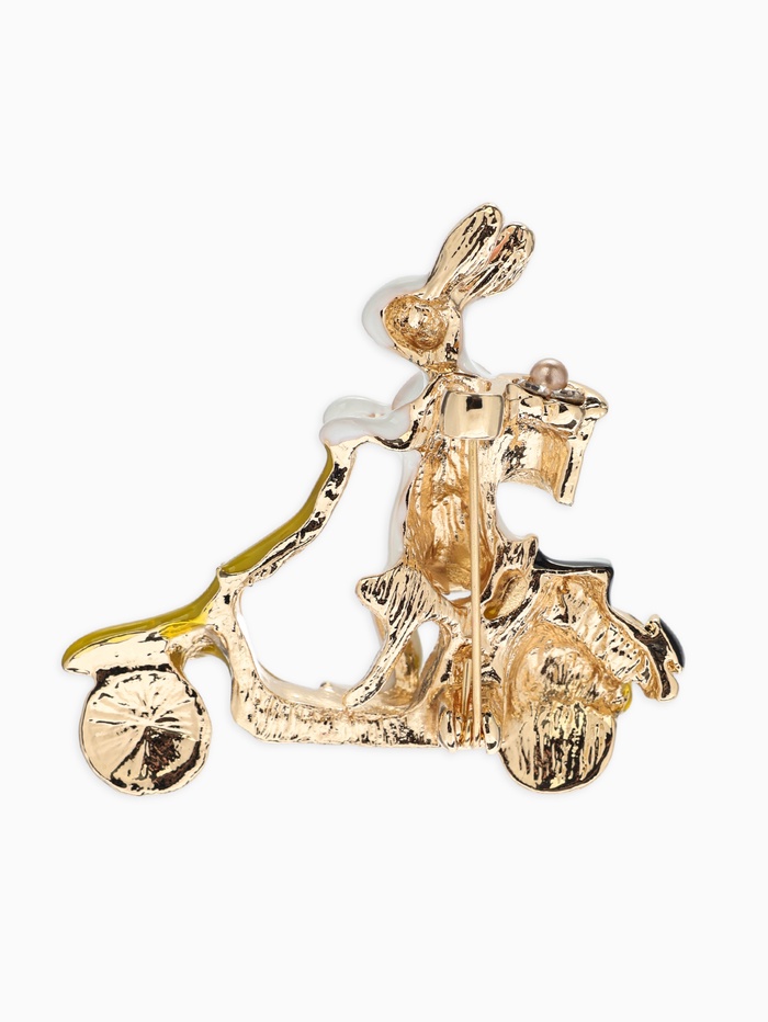Брошь «Заяц на мопеде», цветной в золоте