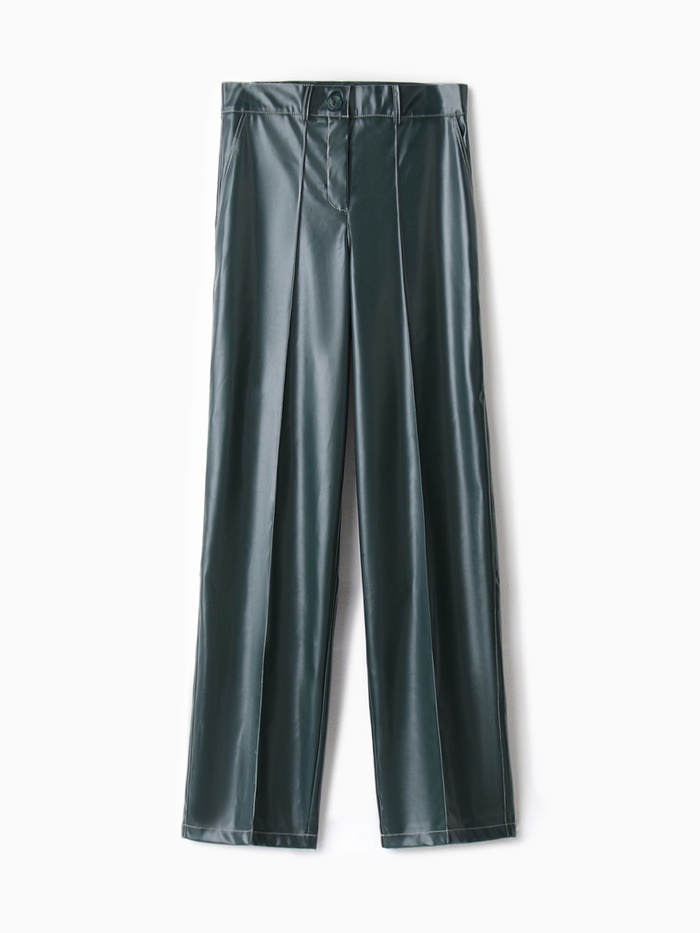 Брюки из экокожи женские MINAKU: Eco leather, зелёные, размер 44